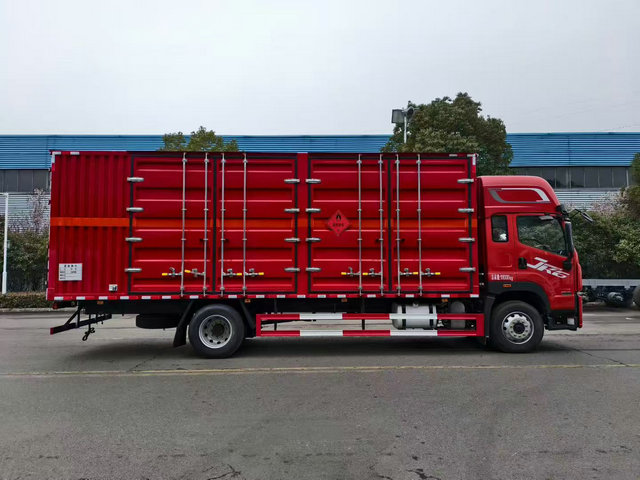 一汽解放易燃液體運輸車上裝配置:廂體長寬高:6800X2400X2400(MM),車輛外部采用專用冷軋鋼板,內(nèi)部采用鋁板,夾層復(fù)合阻燃材料,嚴格控制防火阻燃性,車廂內(nèi)以及邊部安裝的有煙霧報警器以及固定裝置,廂體貼‘易燃液體’危險品標識。