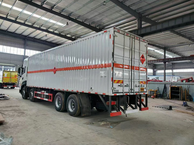 整車運輸介質(zhì):該車用于運輸具有獨立容器(瓶)包裝的易燃固體物品介質(zhì),類項號為:4