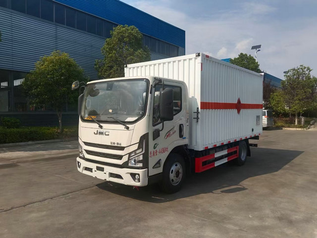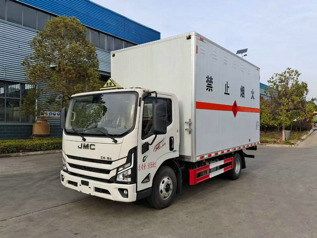 江鈴凱運易燃固體廂式運輸車上裝配置:廂體長寬高:4200X2100X2000(MM),荷載噸位:1100(KG),車輛外部采用專用冷軋鋼板,內(nèi)部采用鋁板,夾層復(fù)合阻燃材料,嚴格控制防火阻燃性,車廂內(nèi)以及邊部安裝的有煙霧報警器以及固定裝置,廂體貼‘易燃固體’危險品標識。