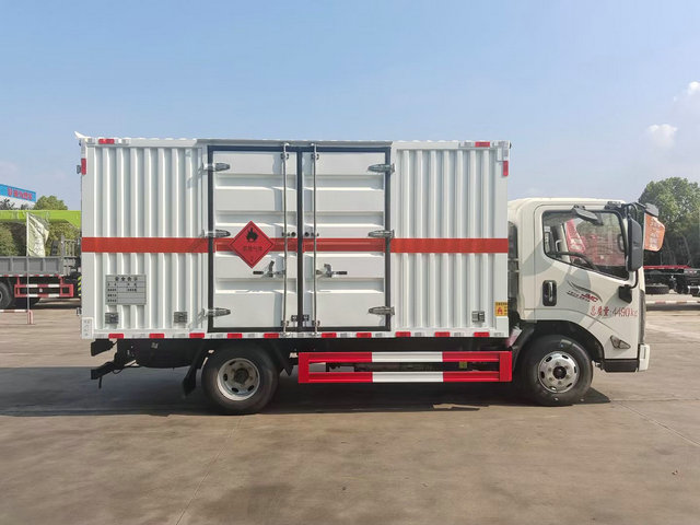 整車運輸介質(zhì):該車用于運輸具有獨立容器(瓶)包裝的易燃固體物品介質(zhì),類項號為:4