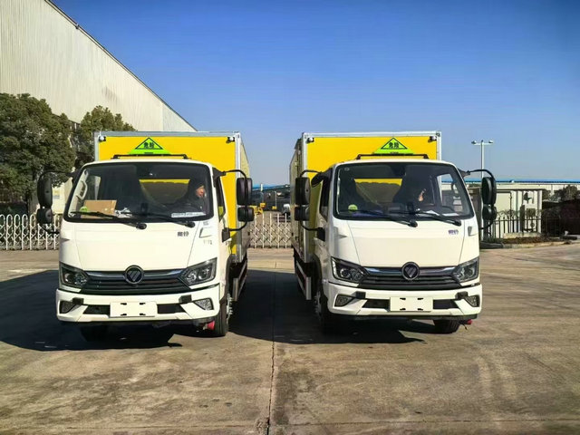 福田奧鈴氧化性物品運輸車上裝配置:廂體長寬高:4200X1760X1700(MM),荷載噸位:1.5噸,車輛外部采用專用冷軋鋼板,內部采用鋁板,夾層復合阻燃材料,嚴格控制防火阻燃性,車廂內以及邊部安裝的有煙霧報警器以及固定裝置,廂體貼‘易燃液體’危險品標識。