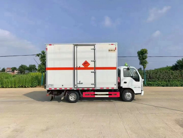 慶鈴五十鈴爆破器材運輸車底盤配置:廂體長寬高:4200X2100X2600(MM),核載噸位:1200(KG),用冷軋鋼板,內(nèi)部采用鋁板,夾層復(fù)合阻燃材料,嚴格控制防火阻燃性,車廂內(nèi)以及邊部安裝的有煙霧報警器以及固定裝置,廂體貼‘爆破器材’危險品標識。